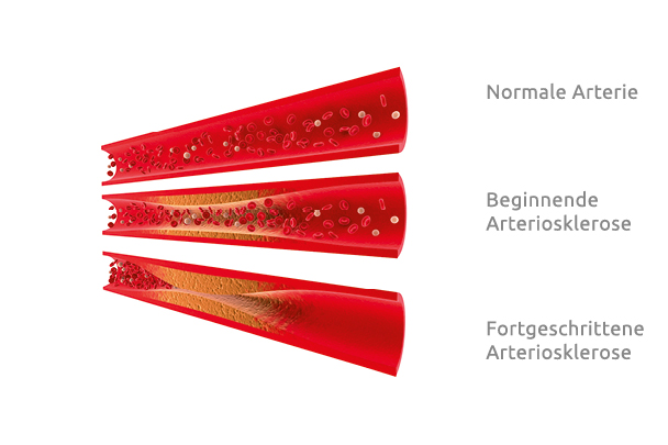 Die gefährlichste Folge des Bluthochdrucks ist die Schlagaderverengung oder -verkalkung. Fettstoffe und Kalk lagern sich an den Innenwänden der Arterien ab. Dadurch kann das Blut nicht mehr ungehindert fließen – und der Blutdruck steigt noch weiter an. Die Folge kann ein Herzinfarkt oder Schlaganfall sein.