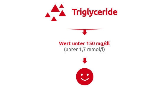 Triglycerid-Werte unter 150 mg/dl (1,7 mmol/l) sind wünschenswert – dieser Wert gilt unabhängig von den Risikofaktoren, also auch für Diabetiker.